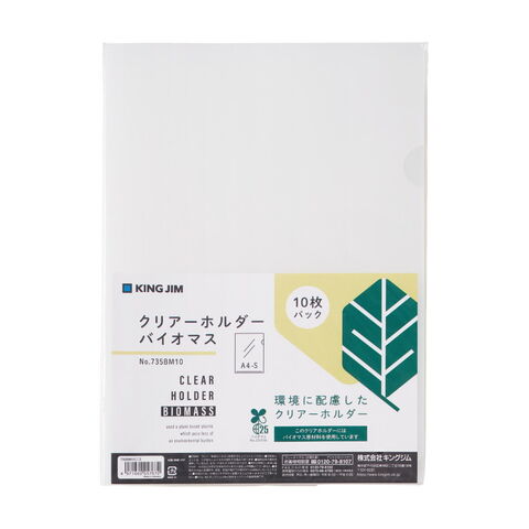 バイオマスプラスチックを配合した環境に配慮したクリアーホルダーです。バイオマスマーク取得、グリーン購入法適合商品。