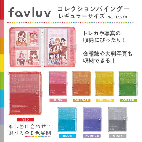 「favluvシリーズ」は「”推し活”をもっとカラフルな毎日に」をコンセプトに、推しのグッズの収納からデコまで楽しめるシリーズとなっています。推しメンのカラーを選べる8色展開です。