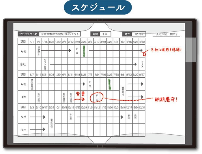 通常のクリア―ファイルのように書類をパラパラとめくって閲覧することができます。見開きでA3サイズの書類も収納可能です。