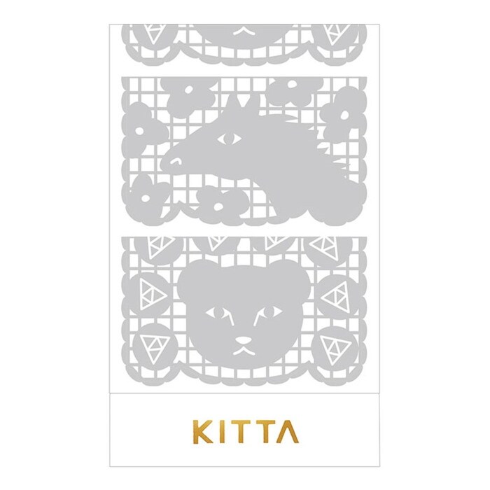 銀色の光沢を楽しめるシルバー箔タイプに新柄が登場。さまざまな動物たちがレース風にあしらわれたデザインです。手帳やラッピングのワンポイントに使えば、さりげなくも高級感のあるシルバー箔の輝きで、ワンランク上の仕上がりに。
