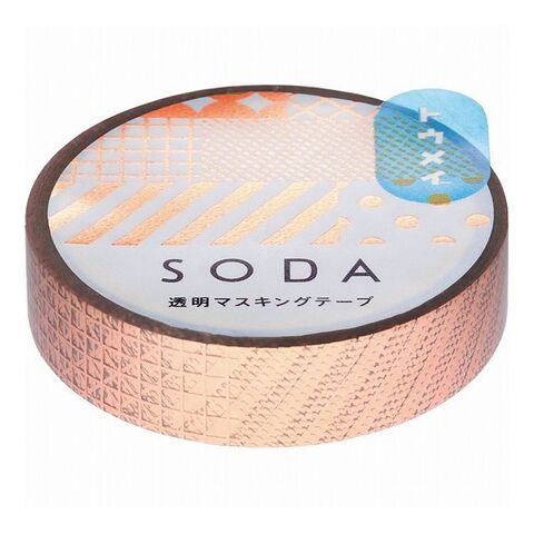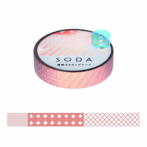 「SODA」は貼ってはがせる透明フィルム素材のマスキングテープです。透明度の高いフィルム素材を使用しているので下地の色を活かして貼ったり、複数枚を重ねて貼っても透明感を楽しむことができます。弱粘着のノリを採用しているため貼り直すことができ、DIYや手帳づくりなどのこだわりたい場面でも安全に使用できます。