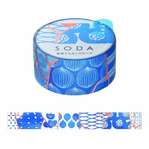 「SODA」は貼ってはがせる透明フィルム素材のマスキングテープです。透明度の高いフィルム素材を使用しているので下地の色を活かして貼ったり、複数枚を重ねて貼っても透明感を楽しむことができます。弱粘着のノリを採用しているため貼り直すことができ、DIYや手帳づくりなどのこだわりたい場面でも安全に使用できます。