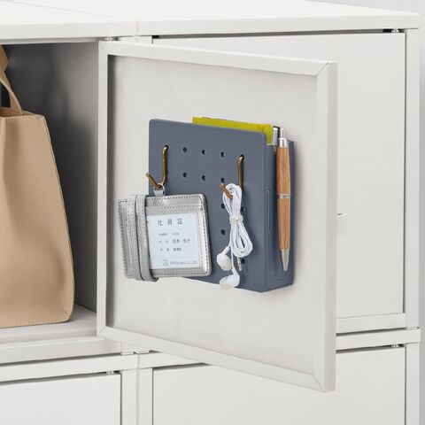 キングジムPEGGYシリーズのオプション品であるミニコンテナやペンスタンドを使えば、フックに掛けられない細々したものをまとめて収納できます。ミニコンテナは印鑑やカードなどを、ペンスタンドはペンやハサミ、眼鏡などを収納するのにぴったりです。