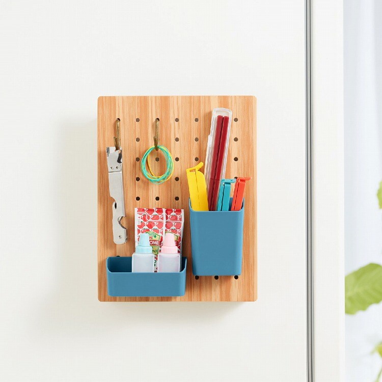 キングジムPEGGYシリーズのオプション品であるミニコンテナやペンスタンドを使えば、フックに掛けられない細々したものをまとめて収納できます。ミニコンテナは印鑑やカードなどを、ペンスタンドはペンやハサミ、眼鏡などを収納するのにぴったりです。