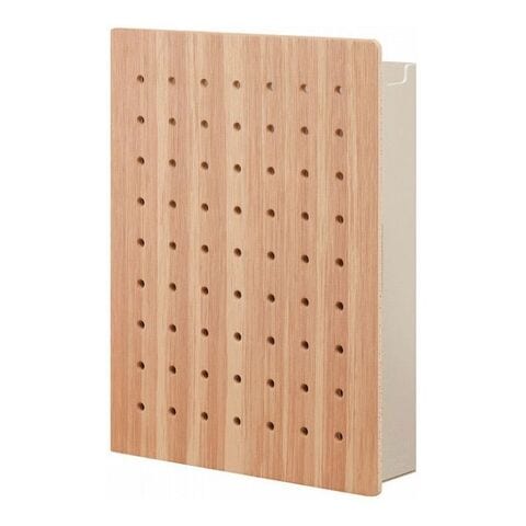 ペグボードの内側の扉開きの収納スペースには、DMやチラシなど紙類も一緒に収納可能。「見せる収納」と「隠せる収納」を同時に実現することができます。