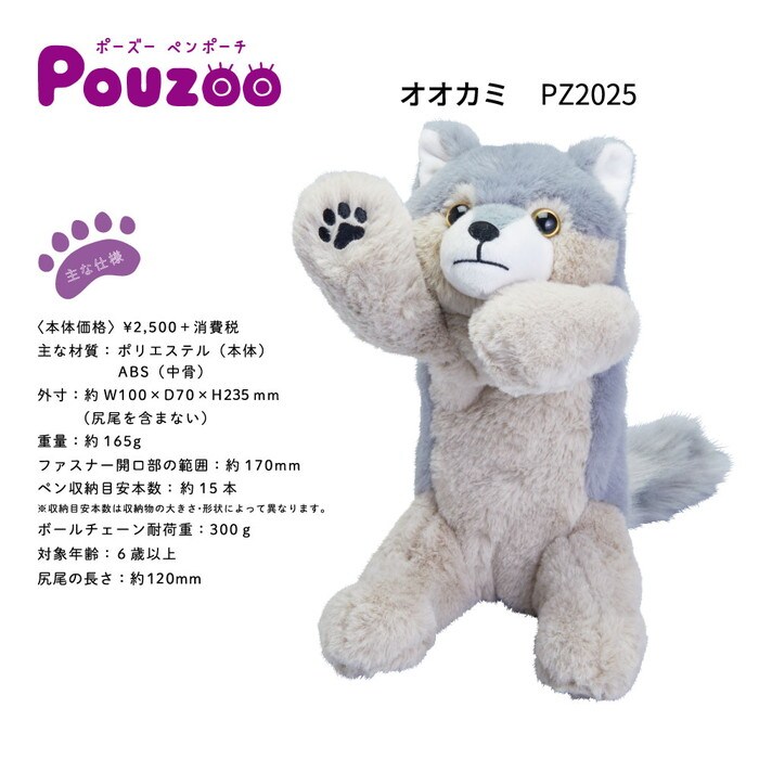 身体を動かして色々なポーズをとることができるぬいぐるみペンポーチの「ポーズ―」に新たな動物が仲間入り!従来のペンポーチと違い、手・足・背中に骨格パーツが入っているので、身体を自由に動かすことが可能です。座らせてスタンドペンポーチとして使用したり、椅子やパソコンに引っかけたりと楽しみ方は色々!ペンを約15本収納できます。