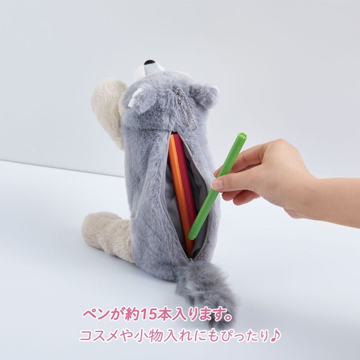 可愛いだけではなく収納力も抜群で、背中部分にはペンを約15本収納することができます。開口部分は約17cmあり、15cm定規も入れることができます。消しゴムやハサミなどの文房具類はもちろん、コスメなどの小物をまとめて収納するのにも便利です。