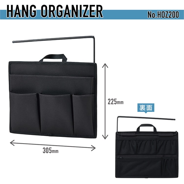 ハングオ-ガナイザ- ヨコ 黒 HOZ200クロ オフィス デスク 収納 便利 持ち運び 文具 リュック バッグ ビジネスバッグ ハンガー