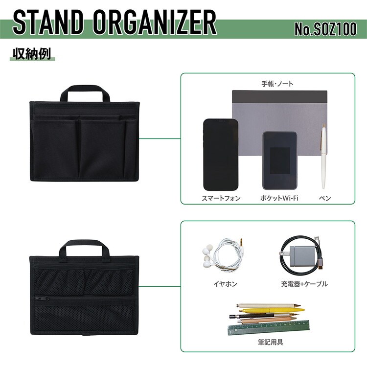 スタンドオ-ガナイザ- ミニ 黒 SOZ100クロ オフィス デスク 収納 便利 持ち運び 文具 リュック バッグ ビジネスバッグ ハンガー