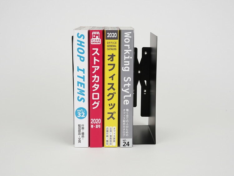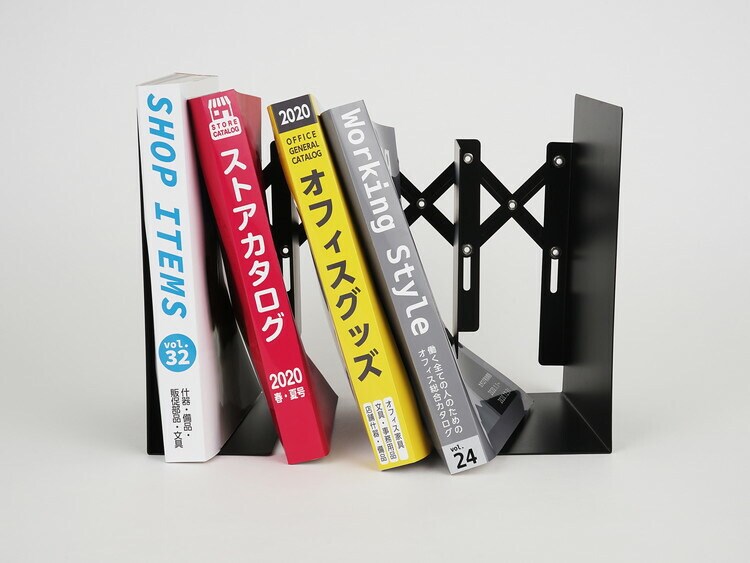 背当てのジャバラが伸縮するため、横幅を調節できるブックエンドです。