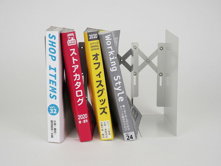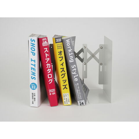 背当てのジャバラが伸縮するため、横幅を調節できるブックエンドです。