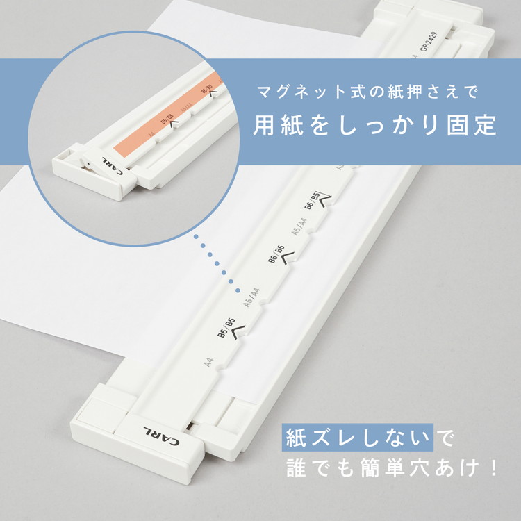 穴あけパンチ あなあけパンチ ゲージパンチ GP-2429 ルーズリーフ 穴あけ 5枚 B5 A5対応 ホワイト カール事務器