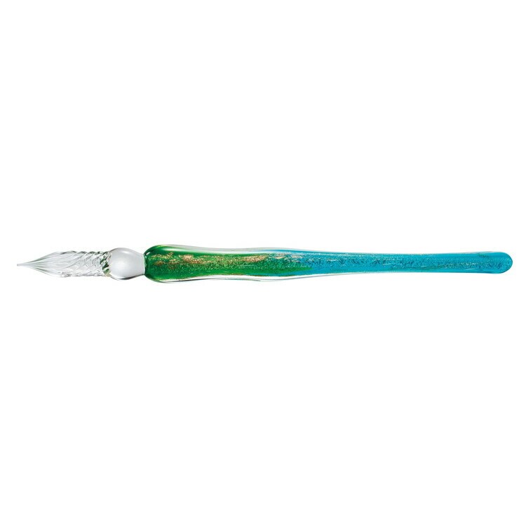 透明感のある美しさとデザイン、なめらかな書き心地のガラスペン。散りばめられた金粉と泡沫が神秘的、手元を美しく演出してくれます。