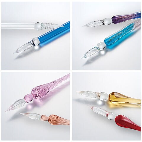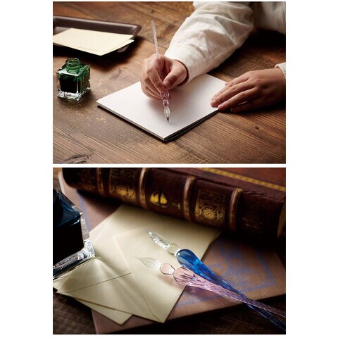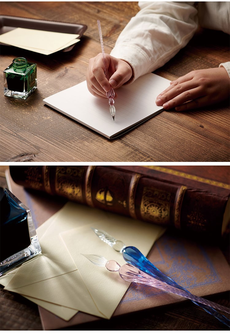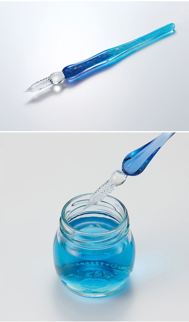透明感のある美しさとデザイン、なめらかな書き心地のガラスペン。光の反射が視線を惹きつける美しい軸。指がフィットし、安定した書き心地です。