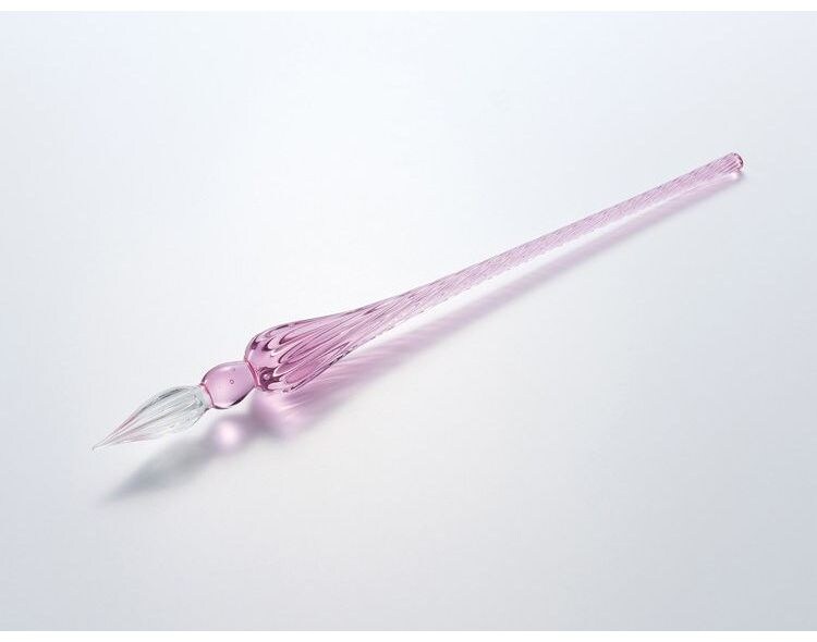 透明感のある美しさとデザイン、なめらかな書き心地のガラスペン。丸みを帯びた優雅な佇まい。雫が流れ落ちるような曲線が印象的です。