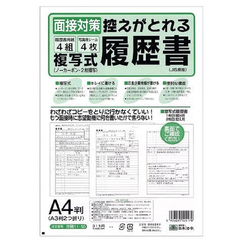 ● 1枚目の企業提出用の履歴書は、労務11-3と同じ、A3サイズ 二つ折り JIS規格になります。