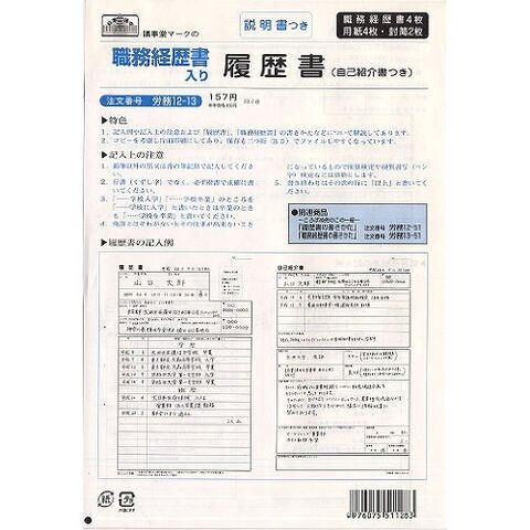 自己紹介書付です。※B4/長4封筒入/職務経歴書つき
