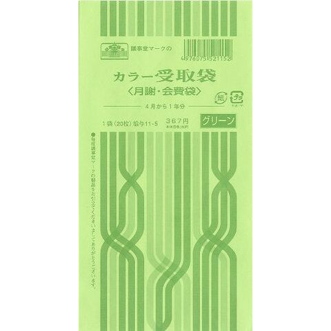 グリーン色カラータイプの月謝袋なので、学年毎、グループ毎当に月謝袋を色分けすると便利です。4月からの1年分の月表示付きです。