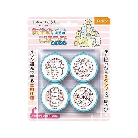 すみっコぐらしのメッセージつきスタンプ4個セット。インクパッド不要で約1000回押せる浸透印。