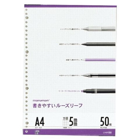 【商品型番】 4979093110704 【商品説明】 書きやすい!書き心地を追及した国産ルーズリーフです。なめらかな書き味と質感の良さでユーザーに愛されているルーズリーフです。【特長】・学生の方々のご意見を取り入れ、品質と使いやすさにこだわったルーズリーフです。・A4サイズ・罫内容:5mm方眼罫・枚数:50枚・厚口中性紙、80g/平方メートル