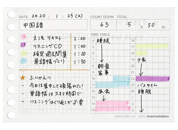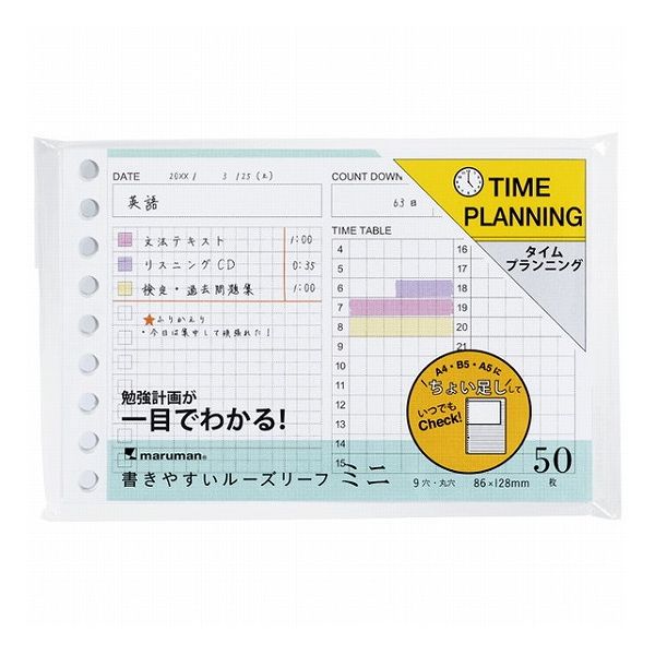 本文:タイムプランニング(表面)/5mm方眼罫(裏面)/50枚