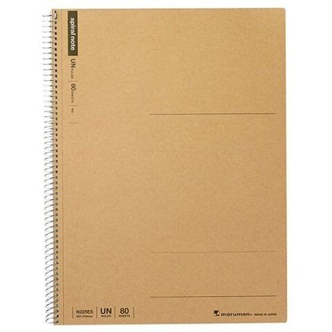 自由に気軽に使える「無地」のノートです【特長】・自由に書ける無地のA4サイズ筆記用紙です。・80枚のたっぷり多枚数です。・ページがフラットになり書き込みやすいスパイラル製本です。・シーンを選ばす、どんな方でも使いやすい風合いのある丈夫なクラフト表紙です。・本文は高精度の切取りミシン目入り、スムーズに切り離しが可能です。・リングの先端を丸めたコイルループ加工を採用し、安全性を高めています。
