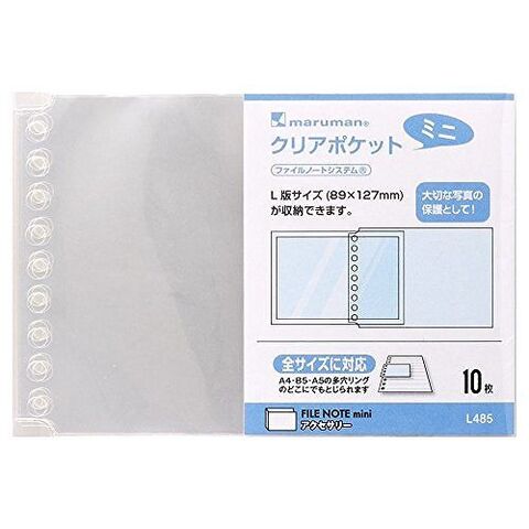 写真の保管や用紙の保管に便利なクリアポケットです。A4・B5・A5の多穴リングのどこにでも綴じられます。