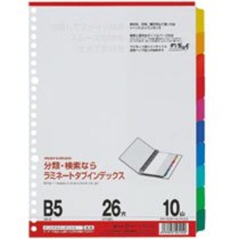 【商品型番】 4979093501052 【商品説明】 検索に便利なインデックスです。見出し部分がカラフルなフィルム補強されているので、見た目もきれいで丈夫で長持ち!【特長】・検索に便利なインデックスです。・見出し部分がフィルム補強されているので、丈夫で長持ち!・B5サイズ/見出し10山タイプ/26穴になります。
