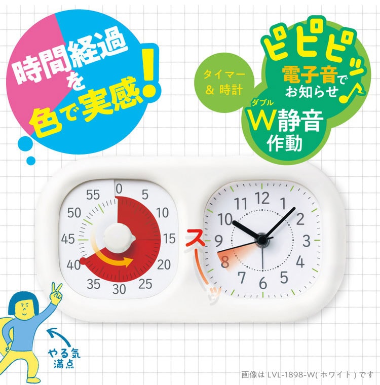 限定カラー登場! トキ・サポ 時っ感タイマー 時計プラス ホワイト バイオレット 色で時間の経過を実感 エコ包装 LVL-1898-W LVL-1898-V 勉強タイマー キッチンタイマー【ポイント10倍】【送料無料】