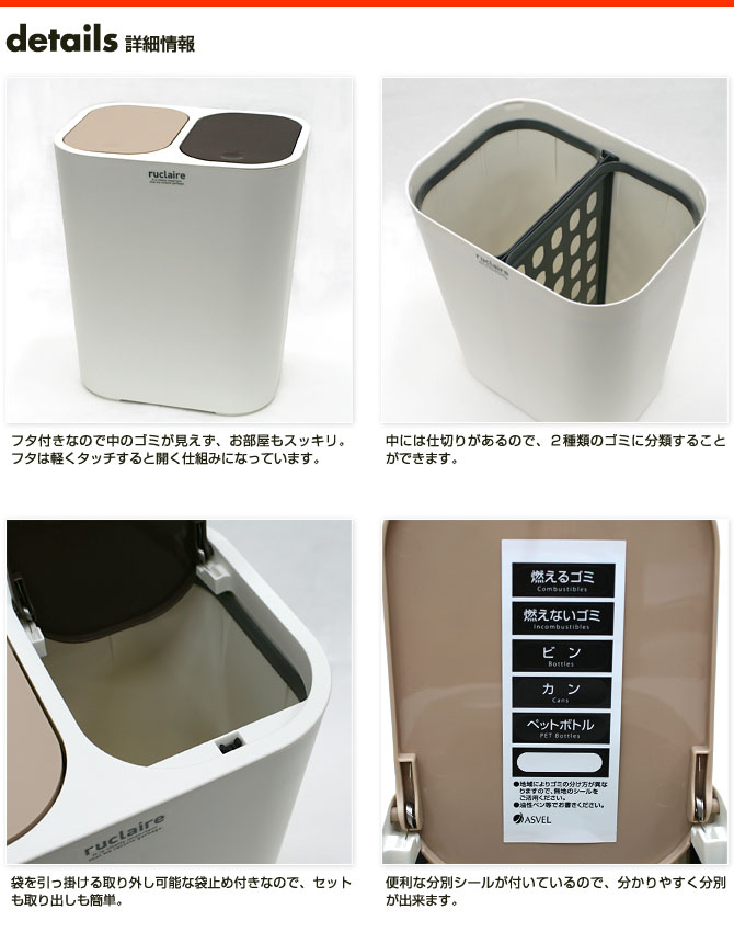 分別ゴミ箱 ルクレール ホワイト ゴミ箱 ごみ箱 ダストBOX くずかご ダストボックス 分別 ダイニング キッチン (代引き不可)