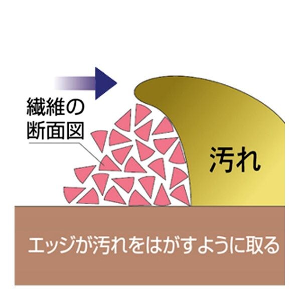 ●フチの繊維でホコリを吸着し、中心の繊維でゴシゴシ拭き掃除ができます。