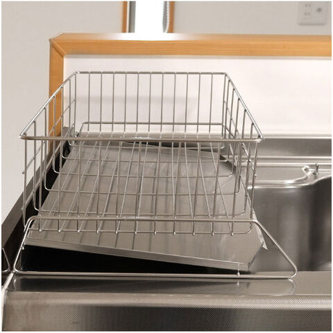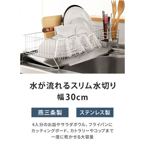 日本製 燕三条 シンクサイド 水が流れるスリム水切り 幅30cm 奥行55cm 箸立て グラスホルダー付き 水切りかご 水切りバスケット ステンレス製 国産 水切りかご【送料無料】