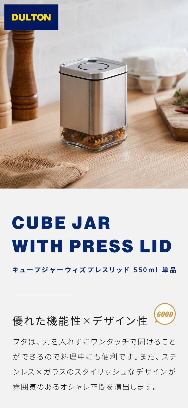 ダルトン 角型 保存容器 Sサイズ 550ml スタッキングOK ワンタッチロック キューブジャー ウィズ プレス リッド ステンレス ガラス 保存容器 キャニスター おしゃれ