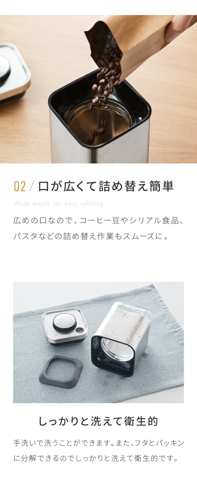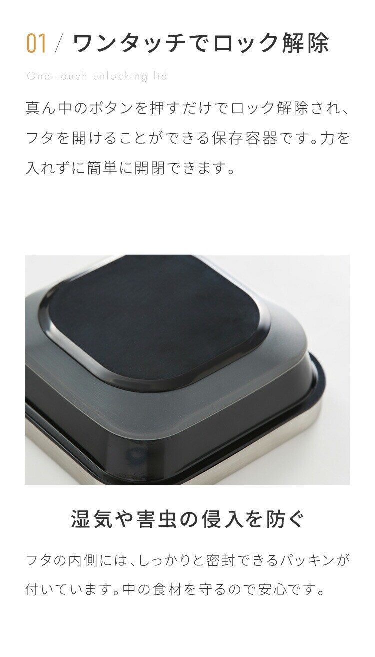 こちらの保存瓶は、ワンタッチで蓋を開ける事が出来ます。力を入れずに開けられるのは嬉しいポイント。