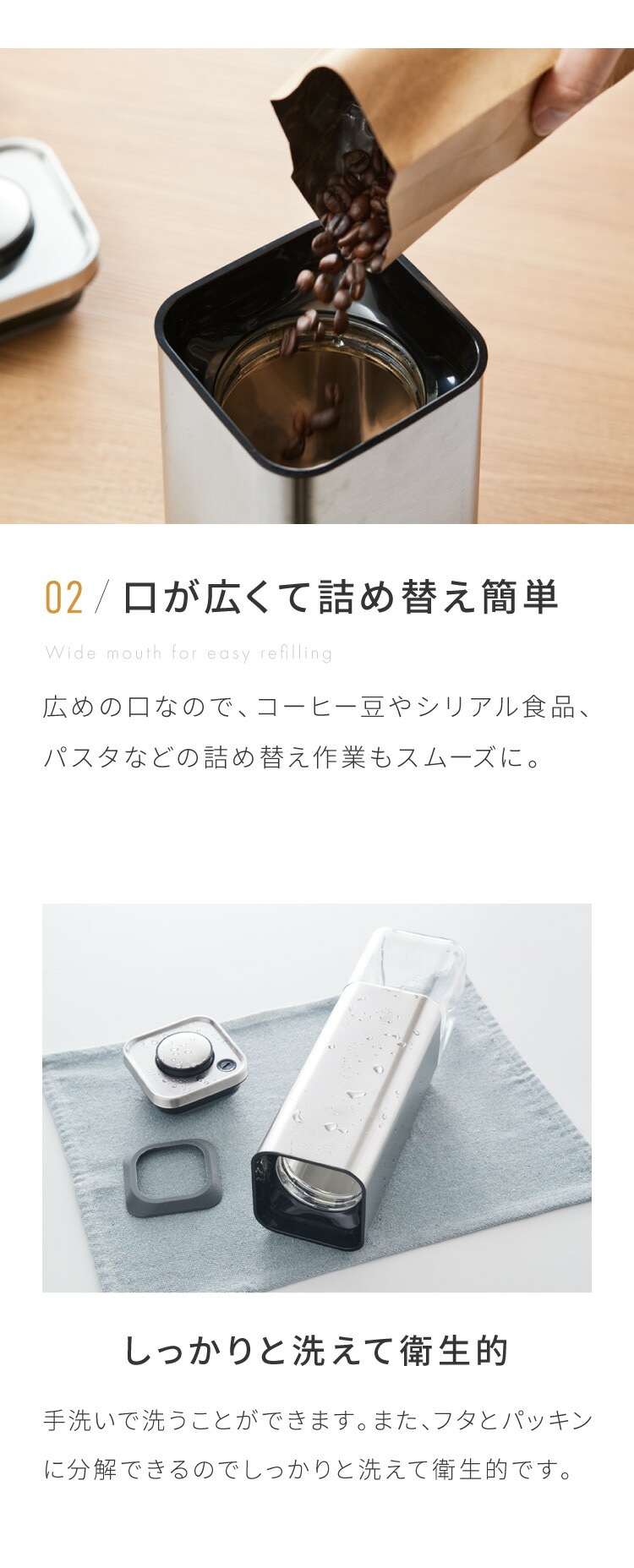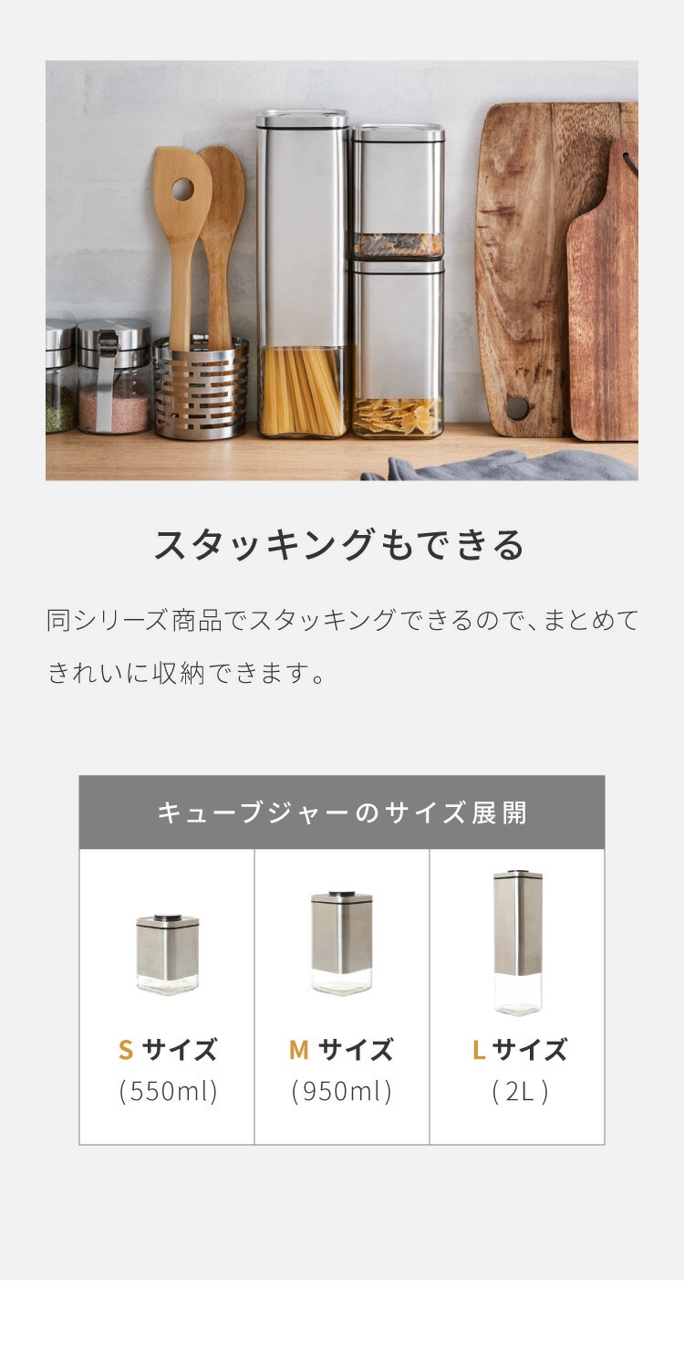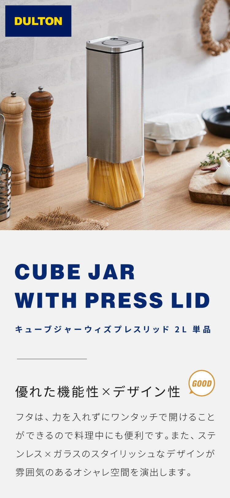 ダルトン 角型 保存容器 Lサイズ 2L スタッキングOK ワンタッチロック キューブジャー ウィズ プレス リッド ステンレス ガラス 保存容器 キャニスター おしゃれ