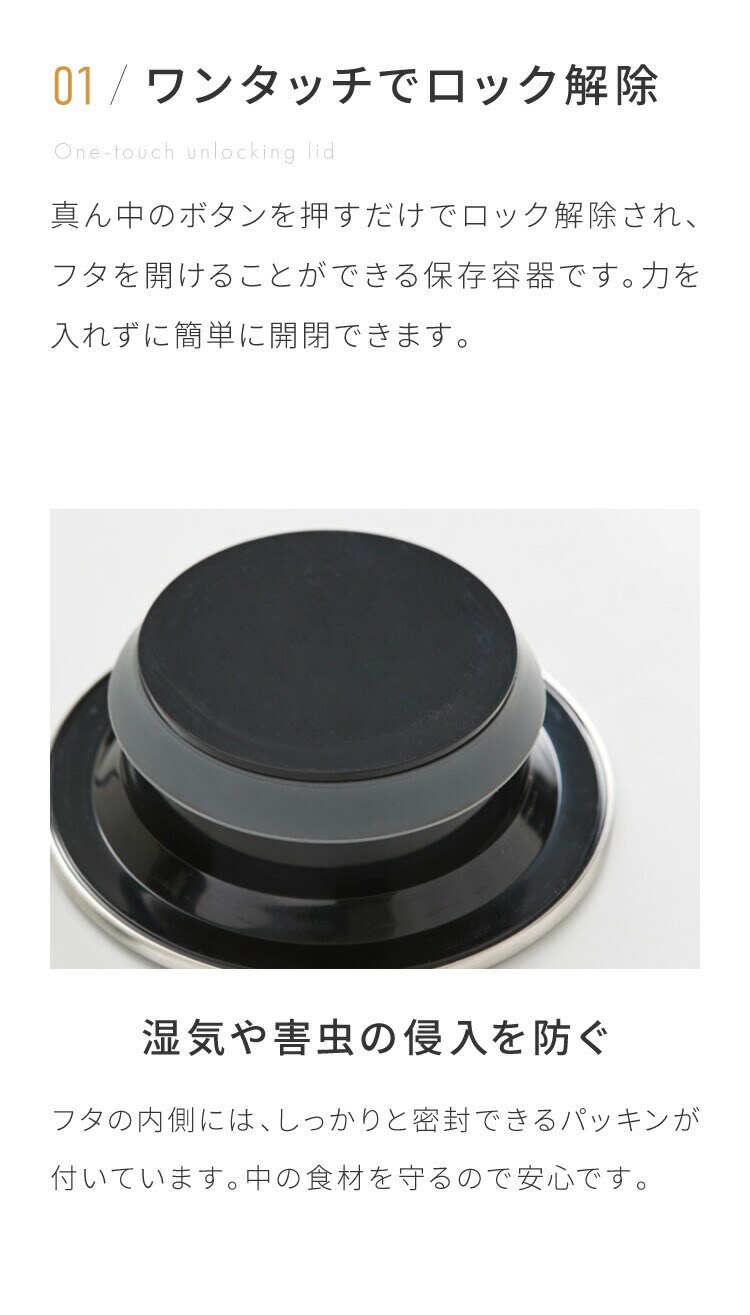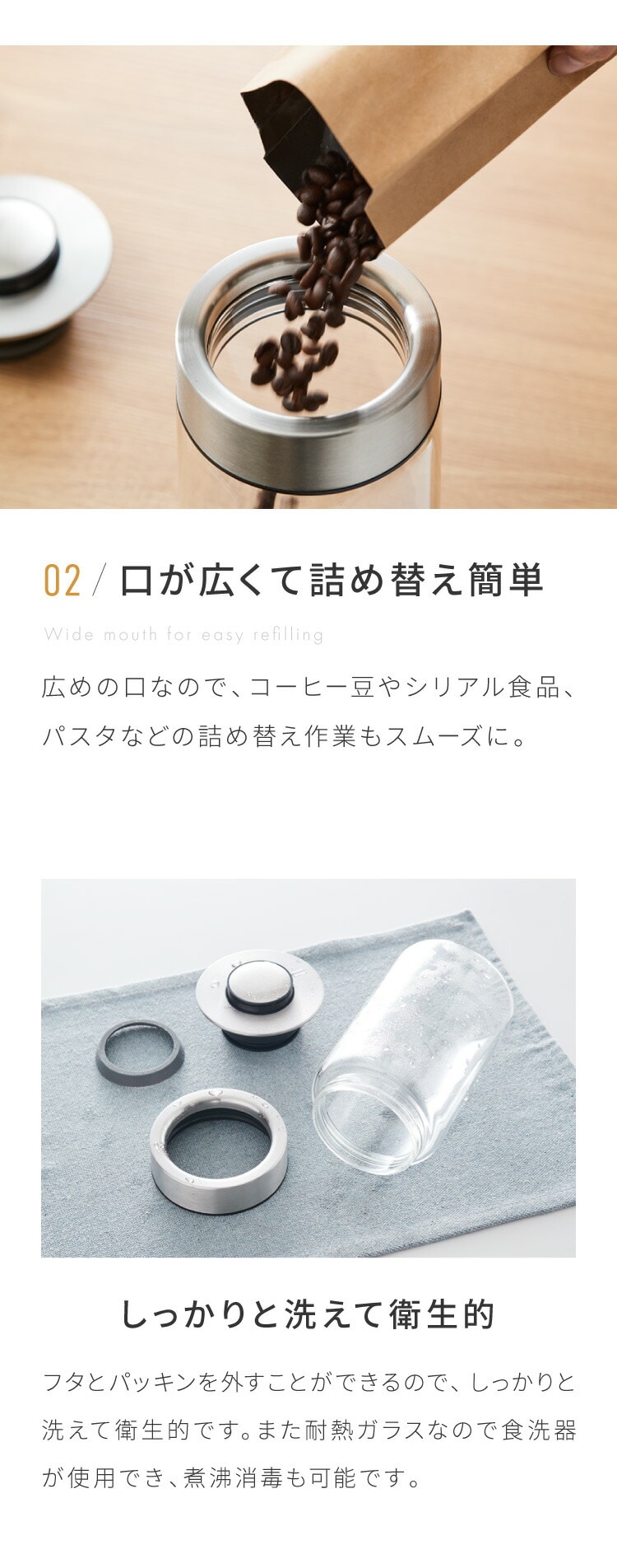 こちらの保存瓶は、ワンタッチで蓋を開ける事が出来ます。力を入れずに開けられるのは嬉しいポイント。