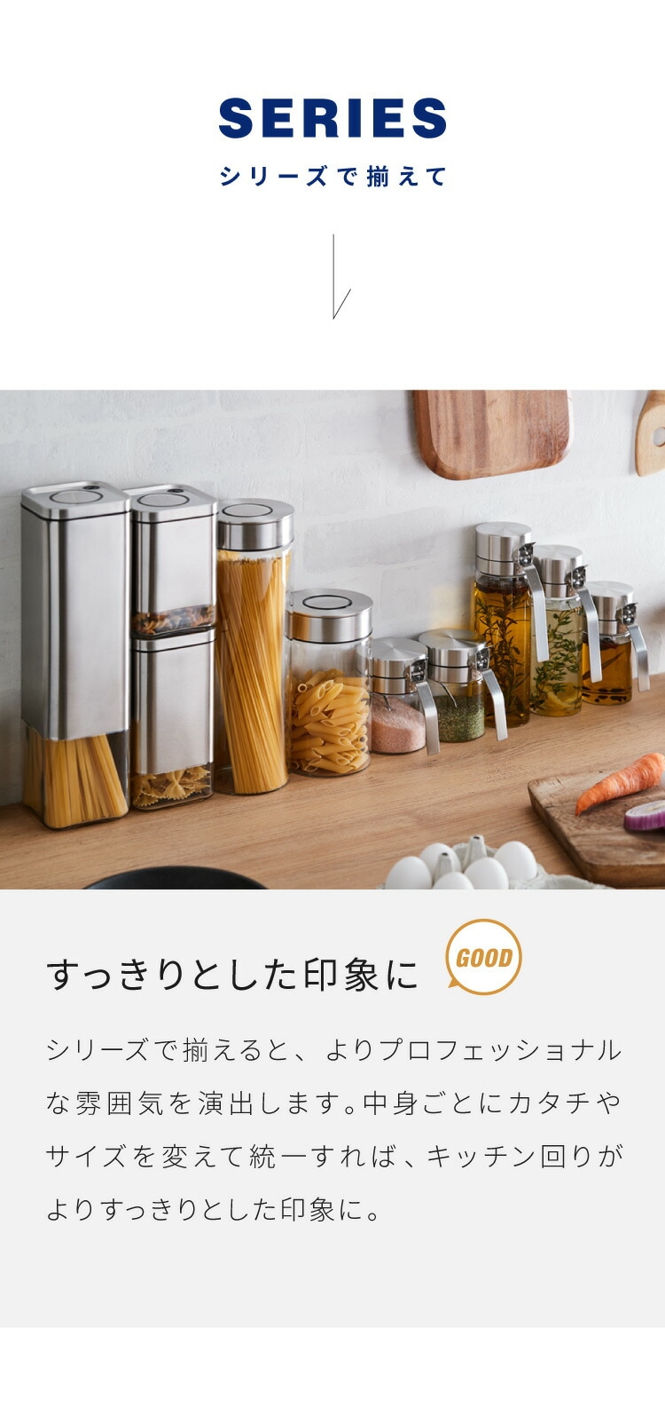 ステンレスとガラスで清潔感のあるデザインなので、一式揃えて並べるとどこかプロフェッショナルなキッチンに。