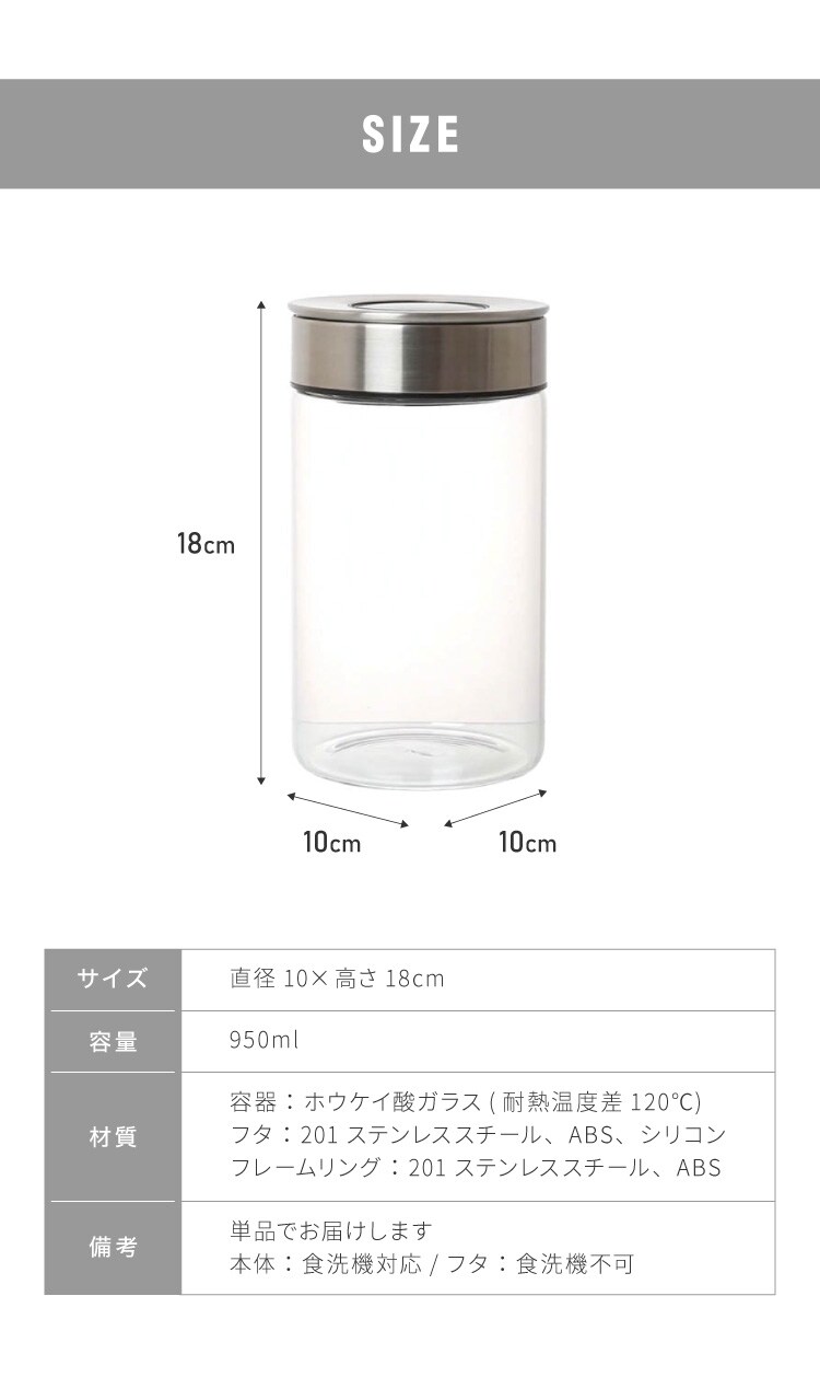 ダルトン 丸型 保存容器 Mサイズ 950ml スタッキングOK ワンタッチロック シリンダージャー ウィズ プレス リッド ステンレス ガラス 保存容器 キャニスター おしゃれ