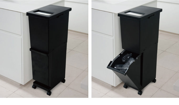 新輝合成株式会社 ユニード 分別スリム2段 55SBK ゴミ箱 コンパクト おしゃれ 55L ブラック【送料無料】
