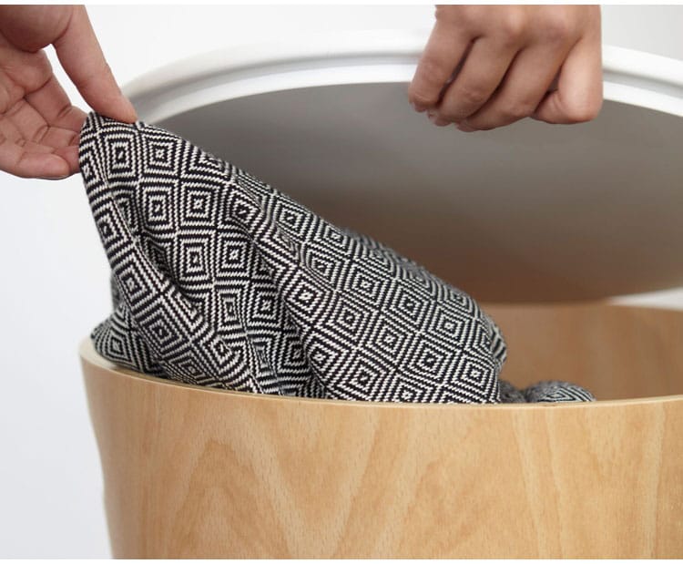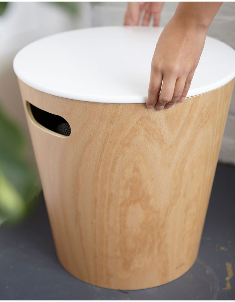 ・かさばる家庭用品も入れられる大容量の収納付き木製スツールです。
