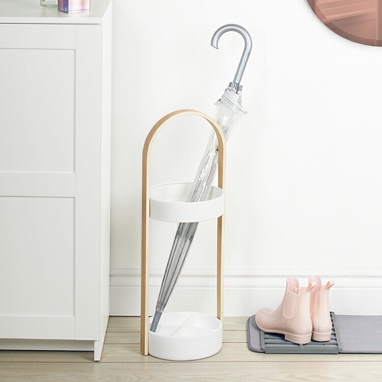 Umbra ハブ アンブレラスタンド ホワイト×ナチュラル 傘立て 折りたたみ傘も収納可 2320240668【送料無料】