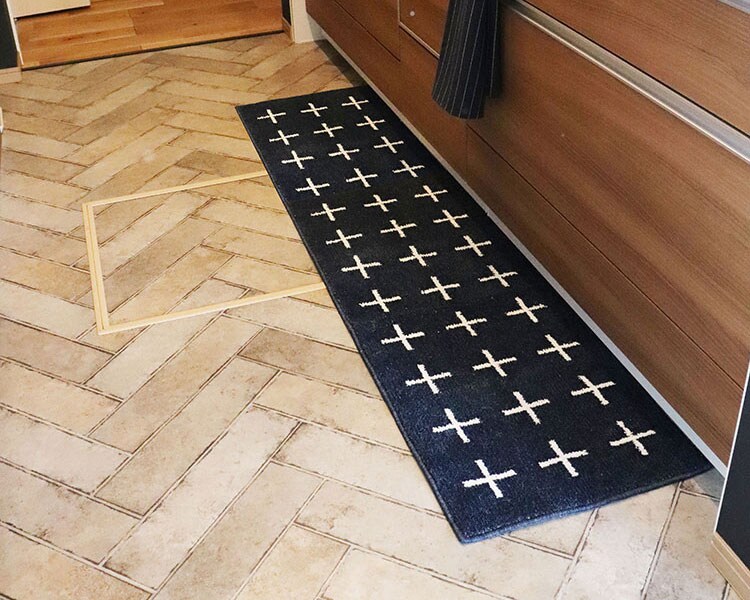 ●シンプルだけど温かみのある北欧風デザインで、一般的なキッチン・ベッドサイド、ソファ前などにちょうどいいサイズのマットです。