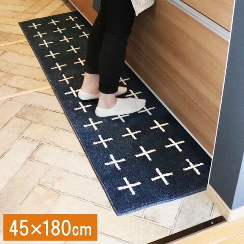 オカトー ナチュラルキッチンマット 45x180 ネイビー 北欧風 洗える 滑り止め加工 台所マット