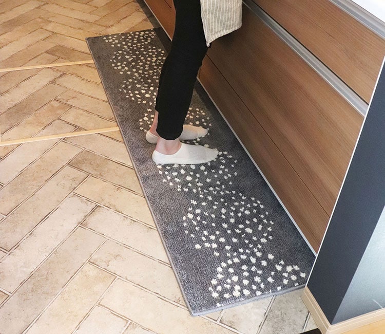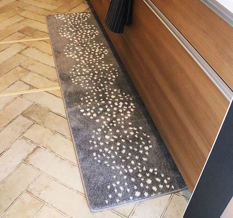 ●シンプルだけど温かみのある北欧風デザインで、一般的なキッチン・ベッドサイド、ソファ前などにちょうどいいサイズのマットです。