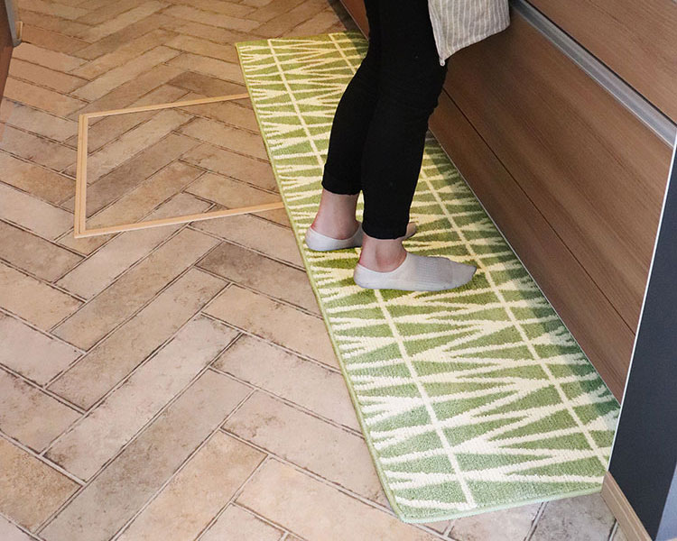 オカトー ナチュラルキッチンマット 45x180 グリーン 北欧風 洗える 滑り止め加工 台所マット