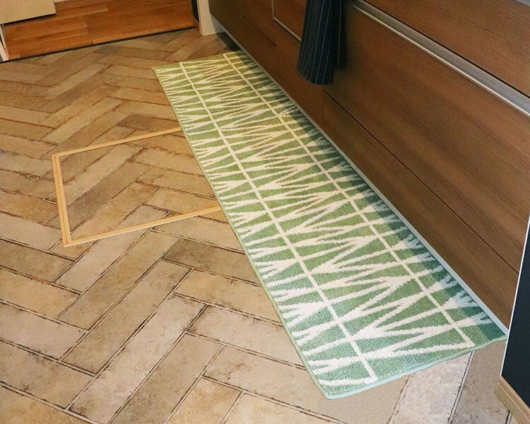 ●シンプルだけど温かみのある北欧風デザインで、一般的なキッチン・ベッドサイド、ソファ前などにちょうどいいサイズのマットです。