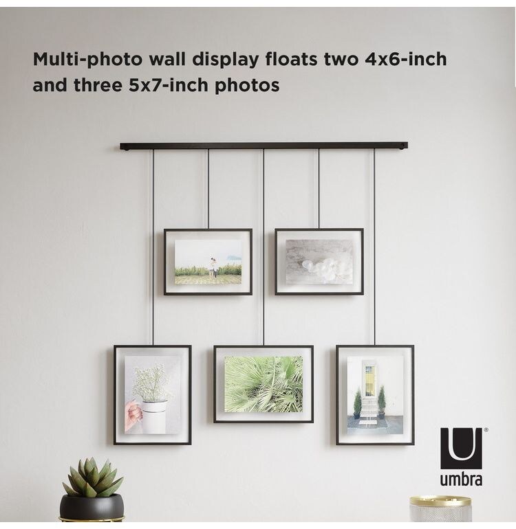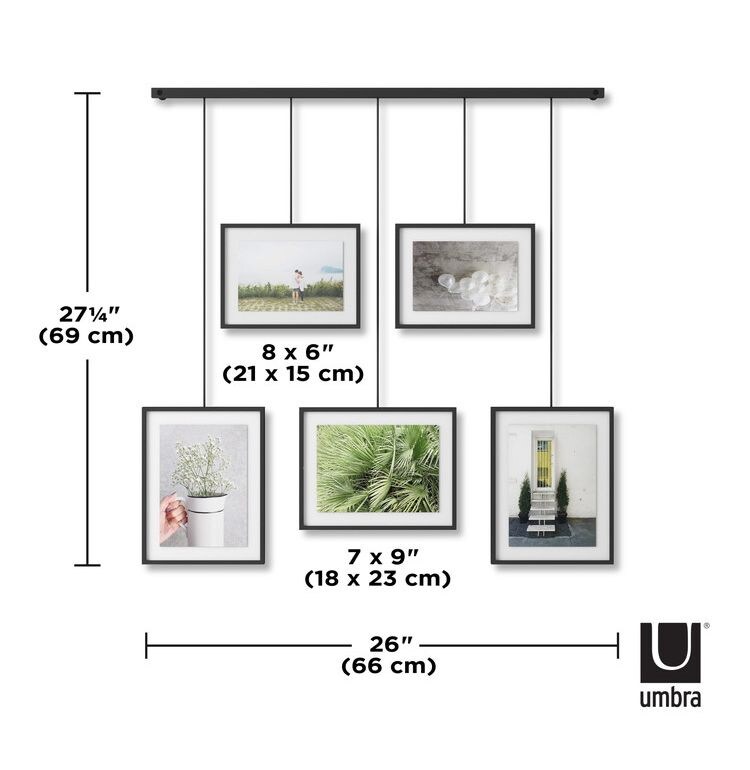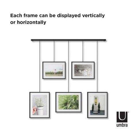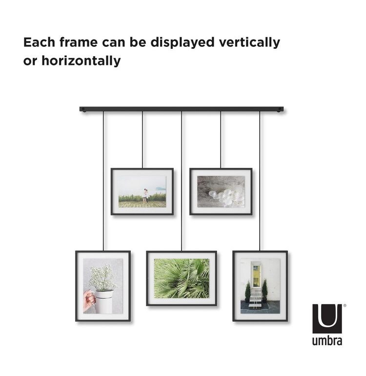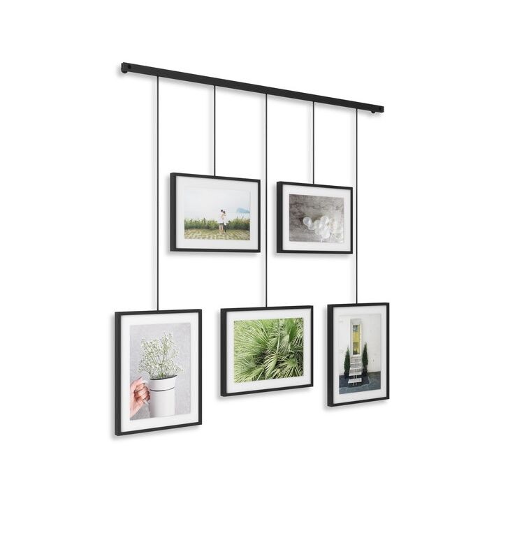 5個のフォトフレームを吊り下げたギャラリースタイルのフォトディスプレイ