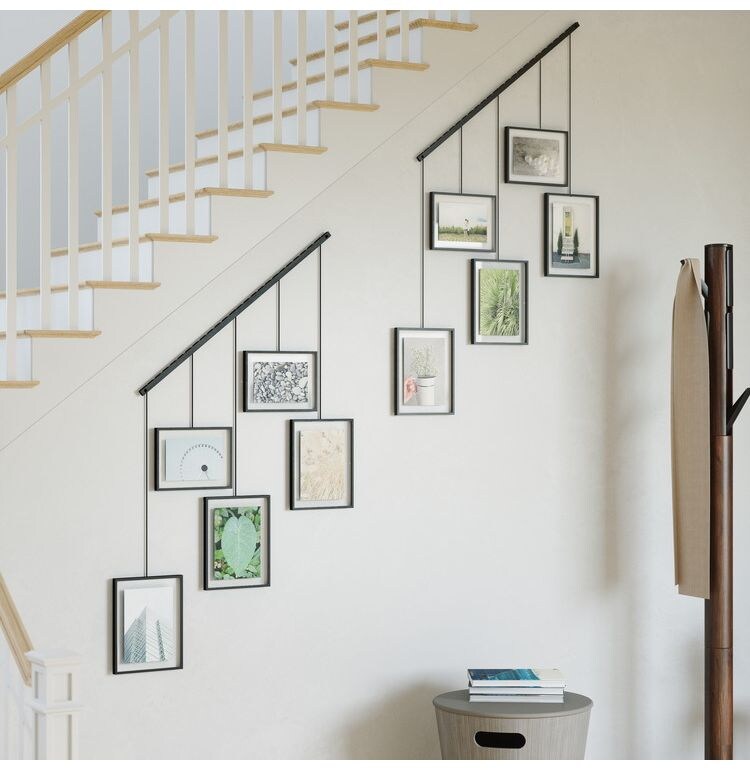 ●レールは水平に掛けるだけでなく、斜めに掛けることもできるので、壁のモダンなアートディスプレイにもなります。