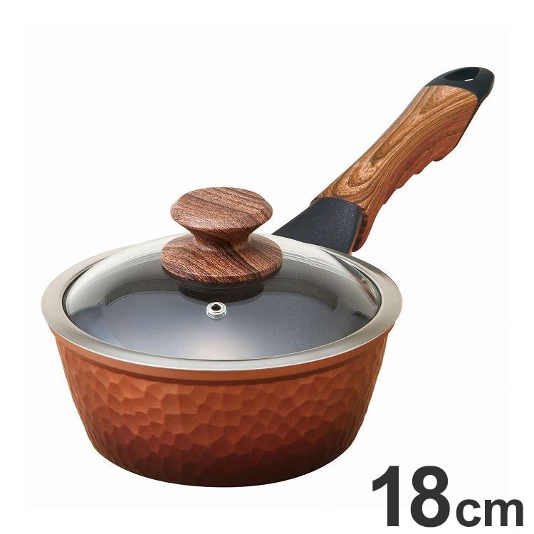 谷口金属 片手鍋 18cm 鍋 IH対応 ガス火対応 槌目 木目調 ハンドル フッ素加工 洗いやすい おしゃれ 槌目鍋 谷口金属工業【送料無料】