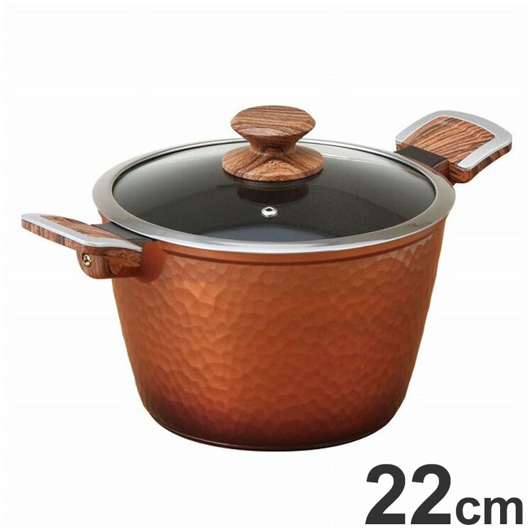 谷口金属 両手鍋 22cm 鍋 IH対応 ガス火対応 槌目 木目調 ハンドル フッ素加工 洗いやすい おしゃれ 槌目鍋 谷口金属工業【送料無料】
